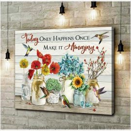 Make Today Amazing Wall Hummingbird And Flowers Angle Art Canvas HG
