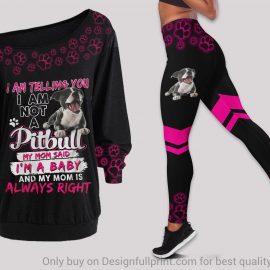 I Am Not A Pitbull My Mom Said I Am A Baby Off Shoulder Long Sleeves Top and Leggings Set