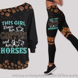 This Girl Loves Her Coffee And Her Horses Off Shoulder Long Sleeve Top and Leggings Set