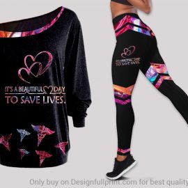Its A Beautiful Day To Save Lives Off Shoulder Long Sleeves Top and Leggings Set