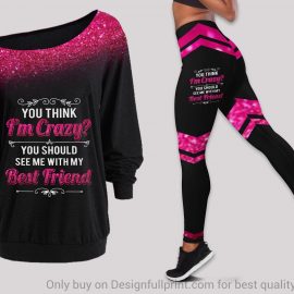 You Think I Am Crazy You Should See Me With My Best Friend Off Shoulder Long Sleeves Top and Leggings Set