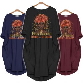 Black Beautiful Brave and Blessed Beautiful Dress for Black Girls Batwing Pocket Dress Black And Proud 365