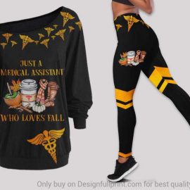 Just A Medical Assistant Off Shoulder Long Sleeves Top and Leggings Set