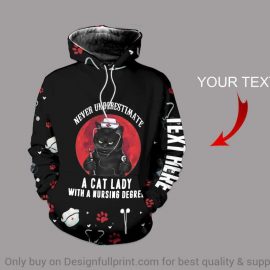 Never Underestimate A Cat Lady With A Nursing Degree Personalized US Unisex Size Hoodie