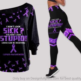 Purple Lupus Awareness Off Shoulder Long Sleeves Top and Leggings Set