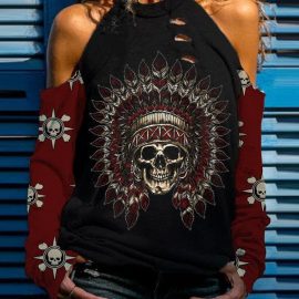 Native American Skull Cut Out Shoulder Top PA