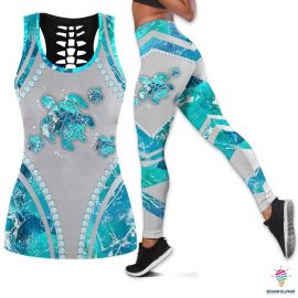 Blue Ocean Diamond Turtle Tank Top And Leggings Set LN