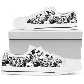 Skull Low Top Canvas Shoes 04 Women, White/Black