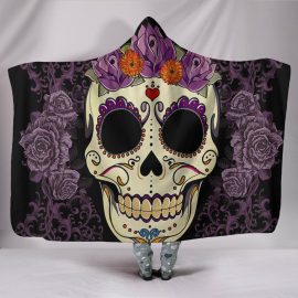 Ultra Soft Wool 3D Sugar Skull Purple Floral Hooded Blanket 012